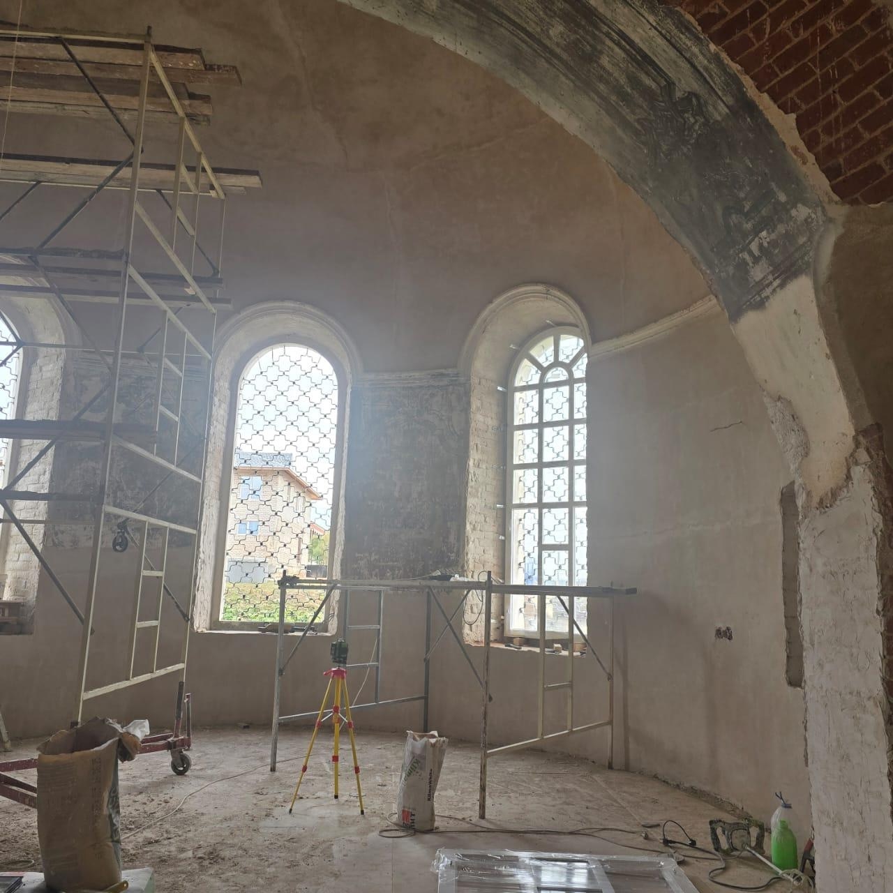 Работы начаты в связи с тем, что в весенний период запланирована реставрация настенной живописи в алтарной апсиде.
