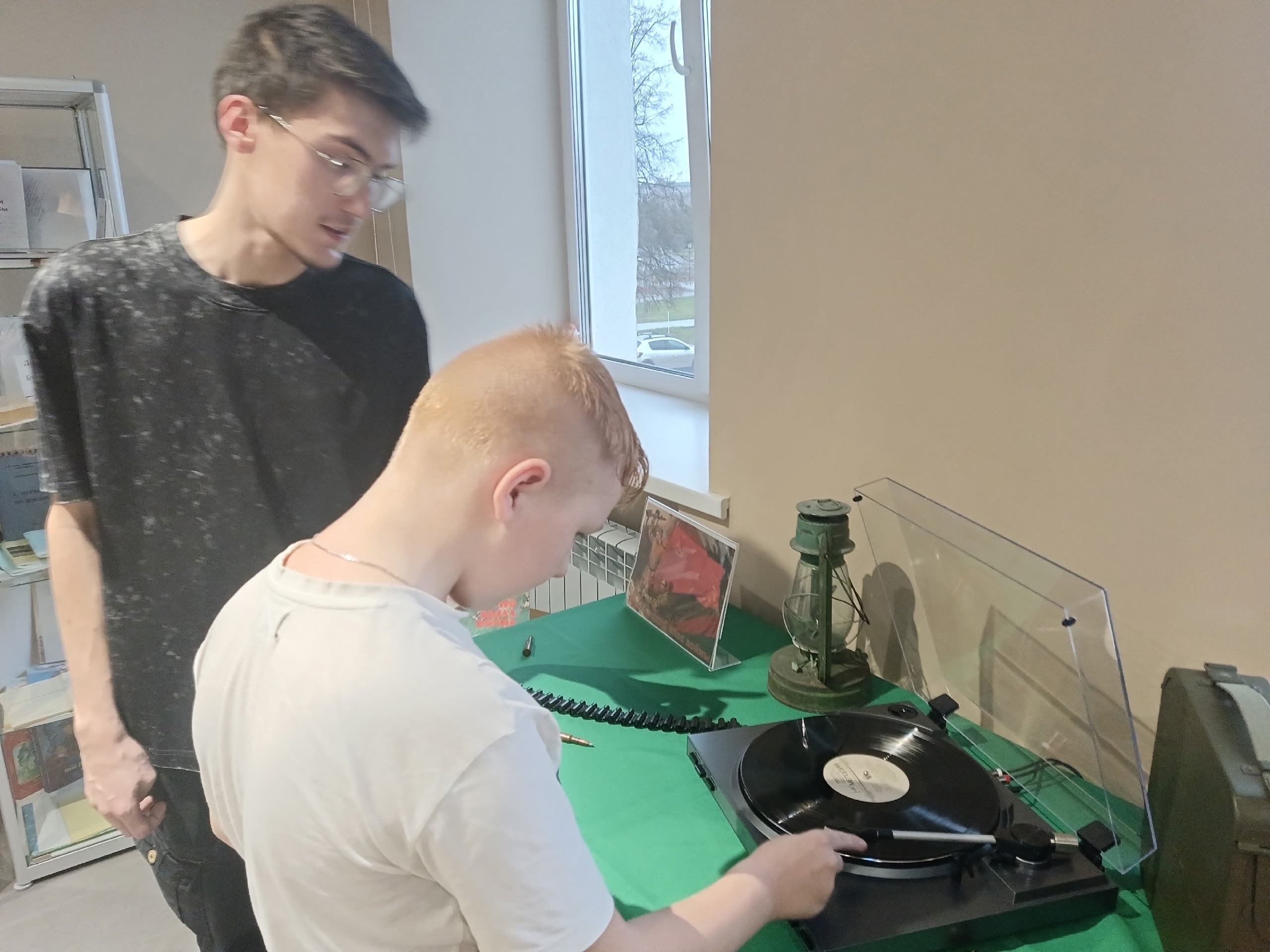 Она звучит в окопах, она лечит и питает душу солдата, она остается и живет в поколениях, как память и связь с теми, кто ценой своей жизни отвоевал мирное небо над нами. Ребята слушали военные песни на виниловых пластинках с помощью проигрывателя, затем ребята попробовали включать пластинки сами.
