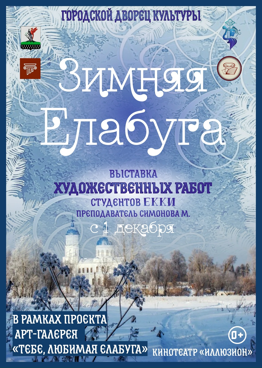 Как чудесно мечтать о зимней сказке, которая так долгожданна для нас! В рамках проекта Городского дворца культуры Арт-галереи "Тебе, любимая Елабуга" открылась выставка студенческих работ "Зимняя Елабуга" учащихся "Елабужского колледжа культуры и искусств" специальности Дизайн под чутким руководством художника преподавателя Симоновой Марины.