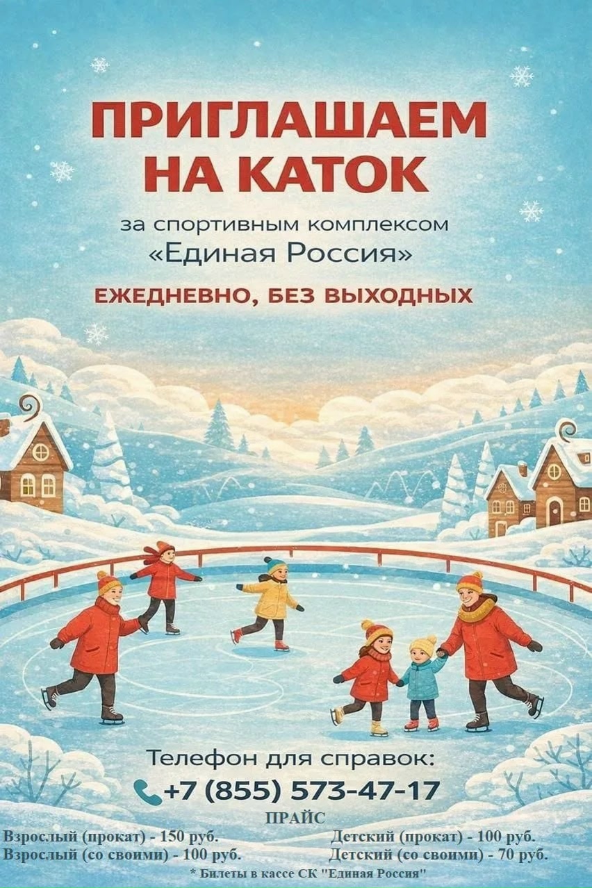 Не упустите шанс провести незабываемый вечер с семьей и друзьями! Приходите, берите коньки и хорошее настроение и катайтесь на здоровье!