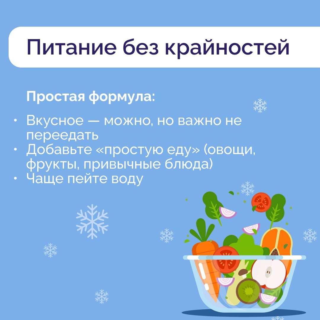 Не забывайте о физической активности и правильном питании. Занятия спортом помогут улучшить настроение и повысить уровень энергии. Постарайтесь также соблюдать режим сна, чтобы ваше тело могло восстановиться после праздников.