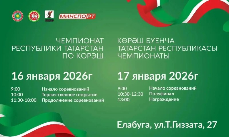 С 15 по 17 января 2026 года в Елабуге состоится одно из главных спортивных событий года — Чемпионат Республики Татарстан по корэш.