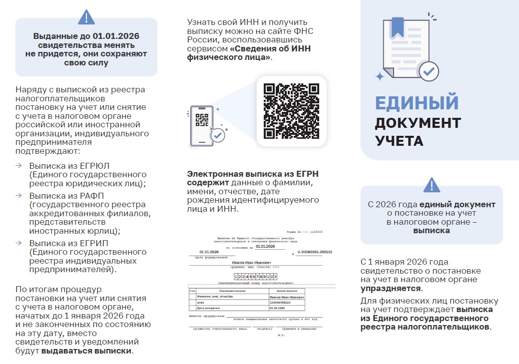 С 2026 года единый документ о постановке на налоговый учёт - выписка