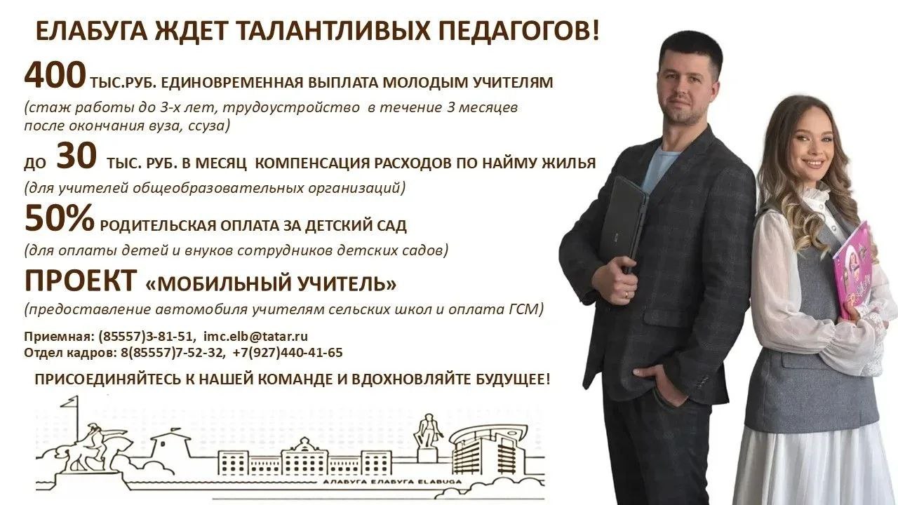 В Елабуге и Елабужском районе приглашают на работу молодые педагогические кадры.