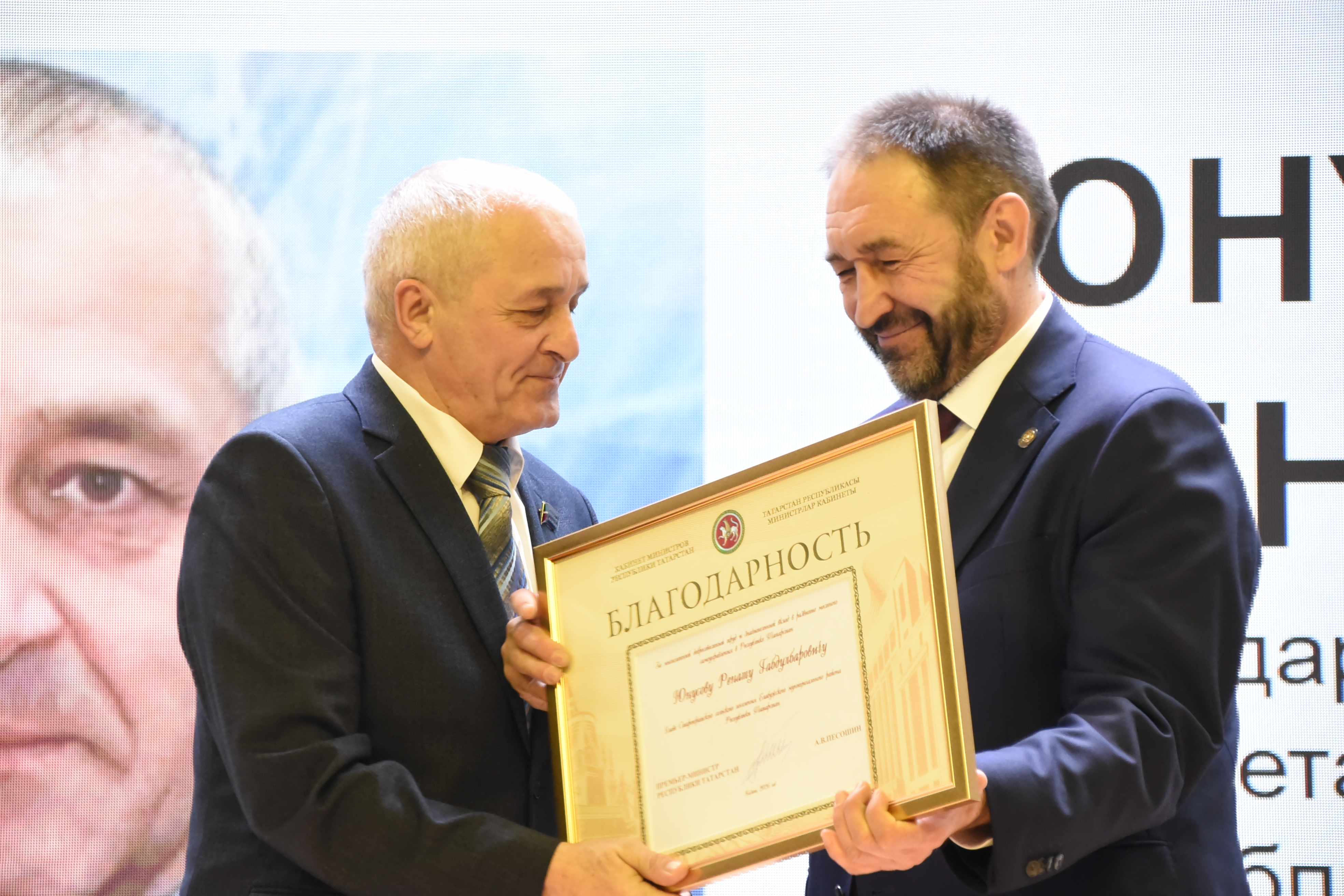 В Елабуге прошла отчетная сессия Елабужского муниципального района, на которой были вручены Благодарности Кабинета Министров Республики Татарстан. Награды, символизирующие признание заслуг местных специалистов, были вручены премьеры Татарстана Алексеем Песошиным.