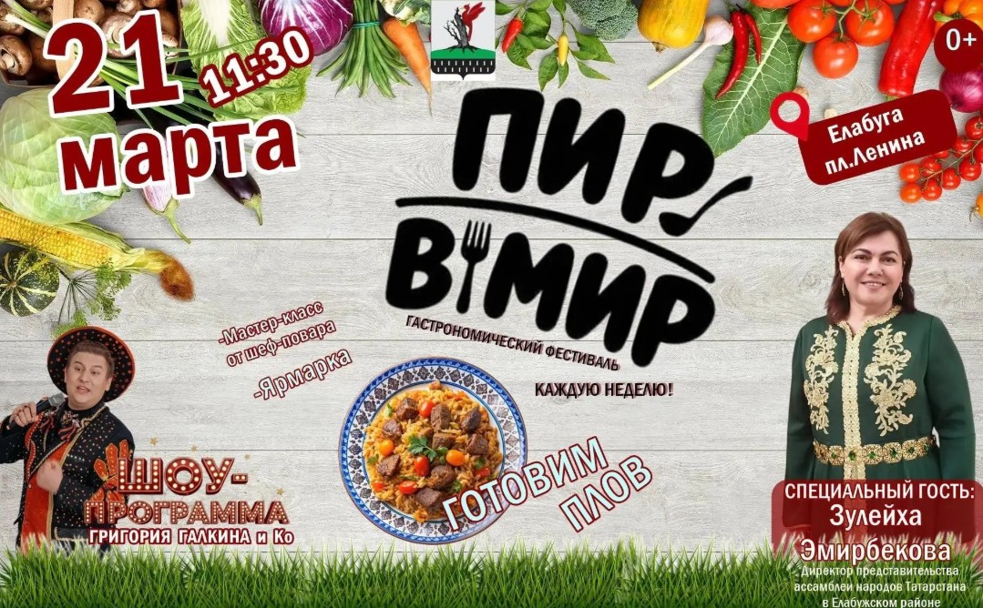 21 марта в 11:30 площадь Ленина в Елабуге превратится в центр яркого гастрономического праздника. Фестиваль «Пир в мир» продолжит добрую традицию еженедельных встреч на свежем воздухе и в этот раз обещает быть особенно вкусным и насыщенным.