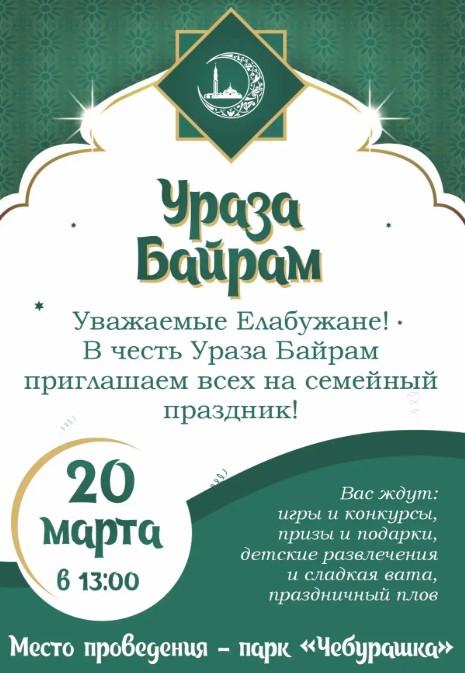 Не упустите шанс отметить Ураза‑Байрам вместе с городом - приходите сами, зовите родных, друзей и соседей! Будем рады видеть каждую семью в парке «Чебурашка». Пусть праздник принесёт радость в каждый дом!