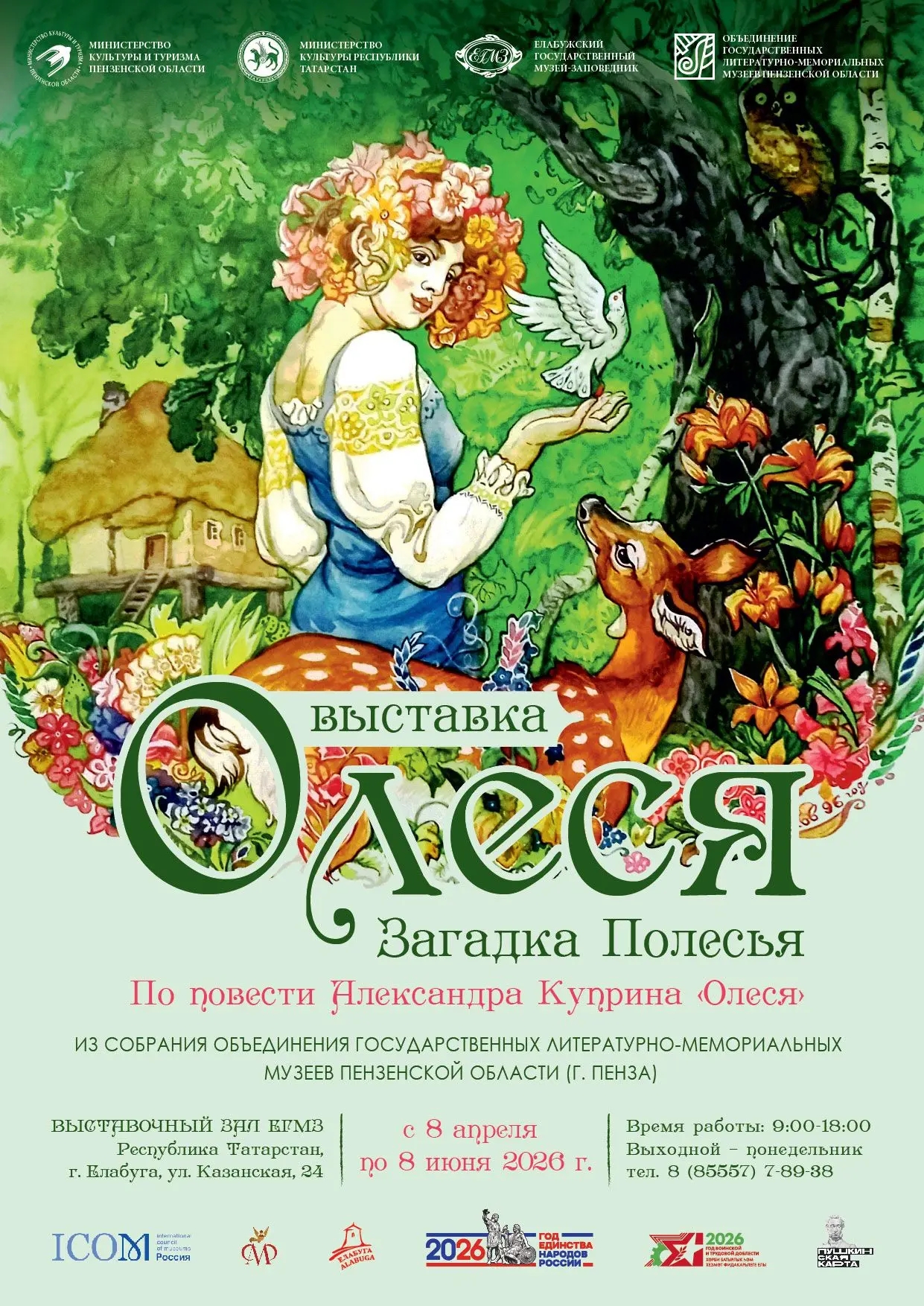 8 апреля в 15.00 в Выставочном зале Елабужского государственного музея-заповедника состоится открытие выставки «Олеся. Загадка Полесья» по повети Александра Куприна из фондовой коллекции Объединения государственных литературно-мемориальных музеев Пензенской области.