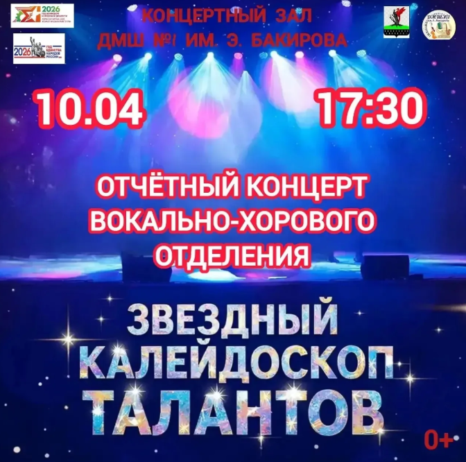 10 апреля в 17:30 в Детской музыкальной школе № 1 им. Э. Бакирова состоится отчётный концерт вокально‑хорового отделения. Мы с радостью приглашаем всех желающих на незабываемый вечер, полный гармонии, эмоций и живого звучания.