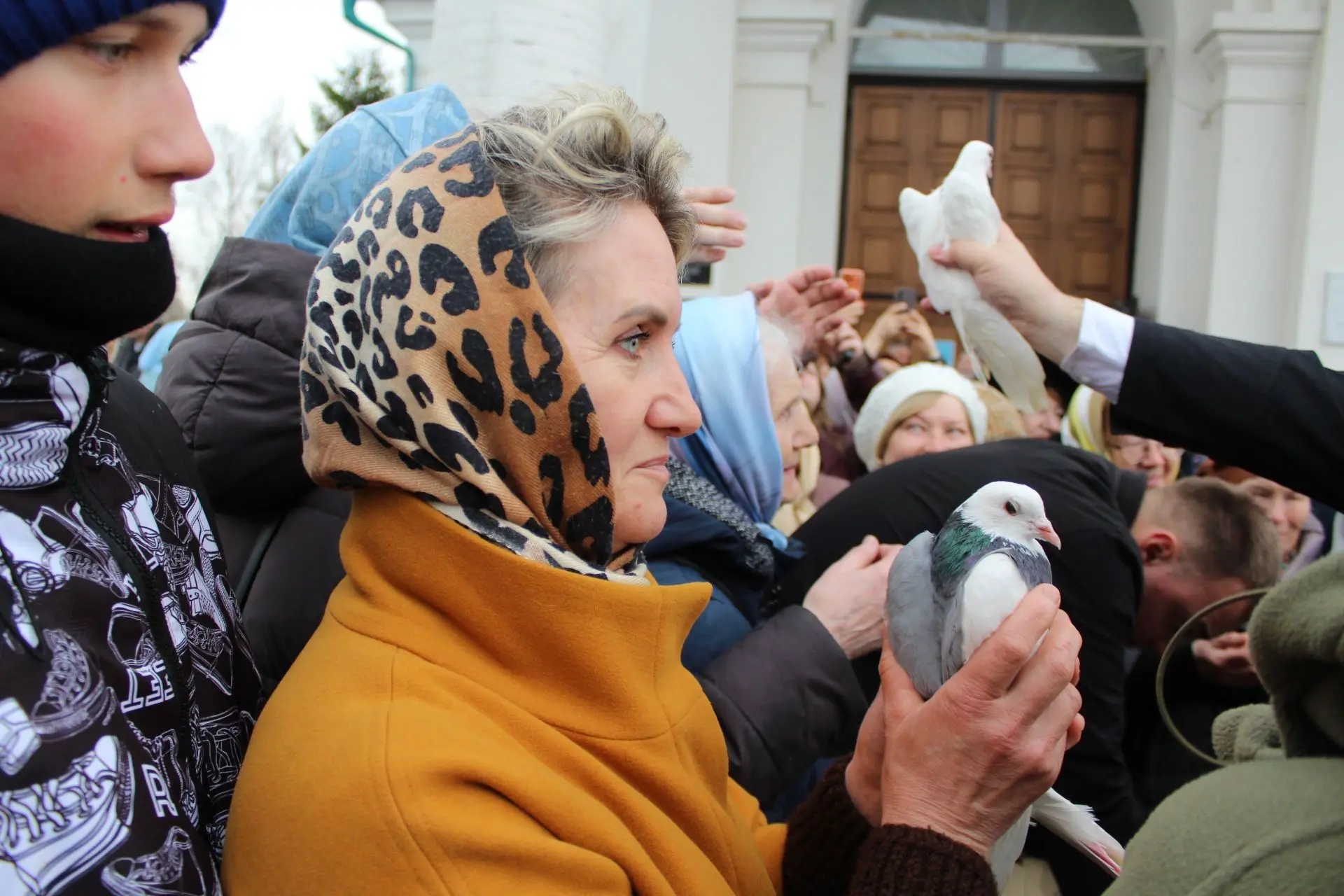 По давней традиции после богослужения в небо выпустили голубей - символ мира, добрых вестей и Святого Духа. Зрелище вызвало радость у взрослых и детей: птицы, взмывающие ввысь, стали зримым воплощением духовных устремлений и надежд.