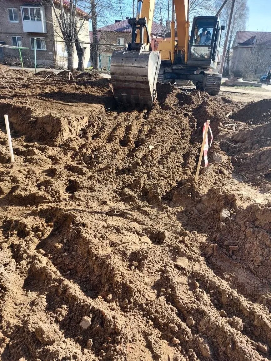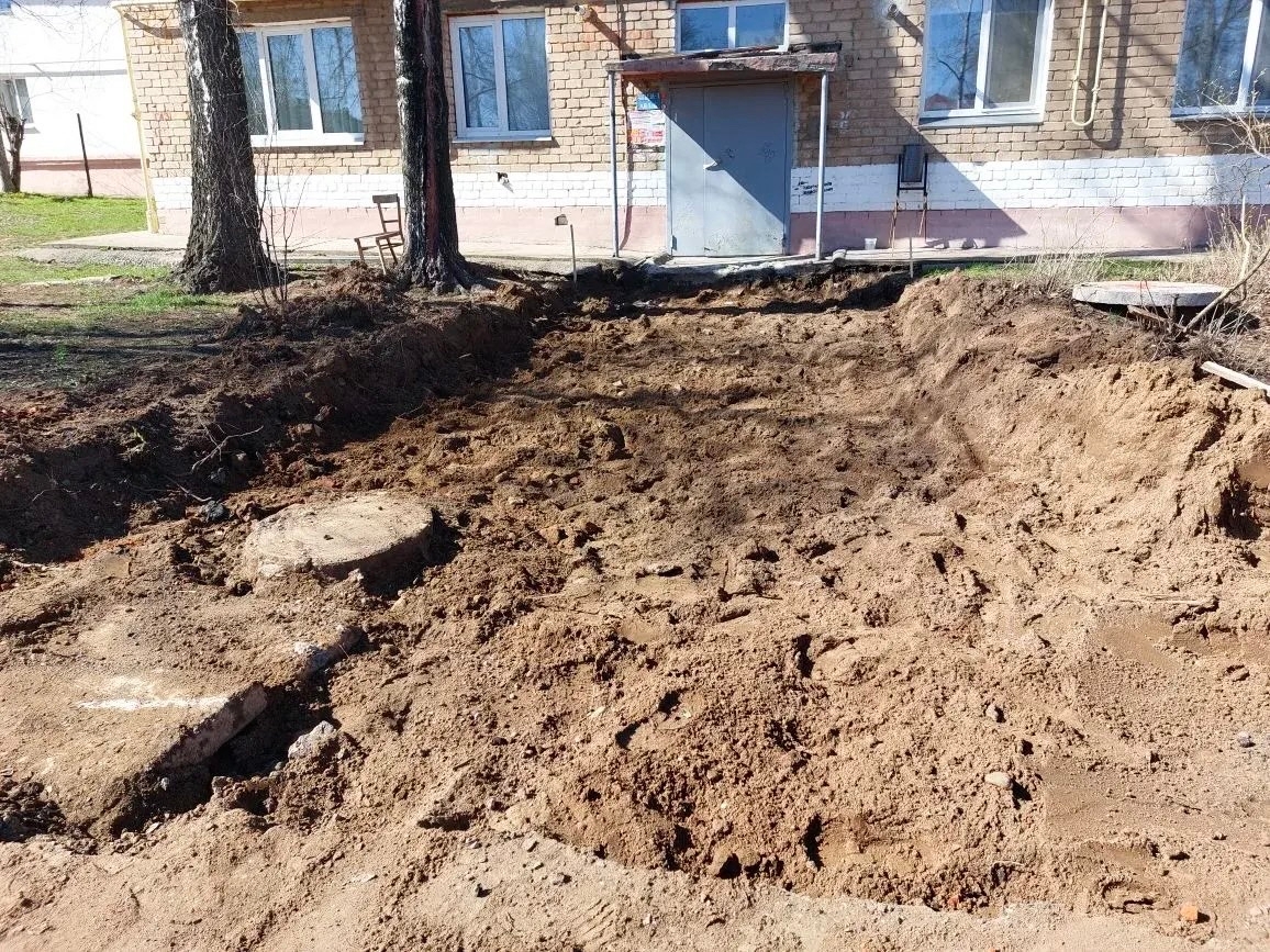 Всего в текущем году будут благоустроены 13 дворов. Из них 12 в Елабуге и 1 в сельском поселении. Работы уже начались. На улице Матросова, 13 ведётся устройство грунтового основания под тротуар и входные группы и под парковку.