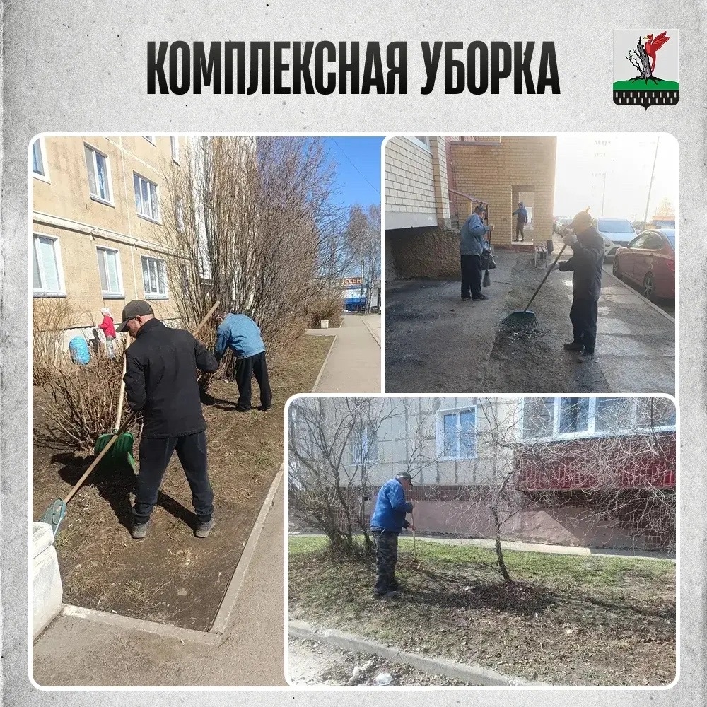 ➡ Генеральная уборка: уборка мусора и прошлогодней листвы, приведение в порядок контейнерных площадок.