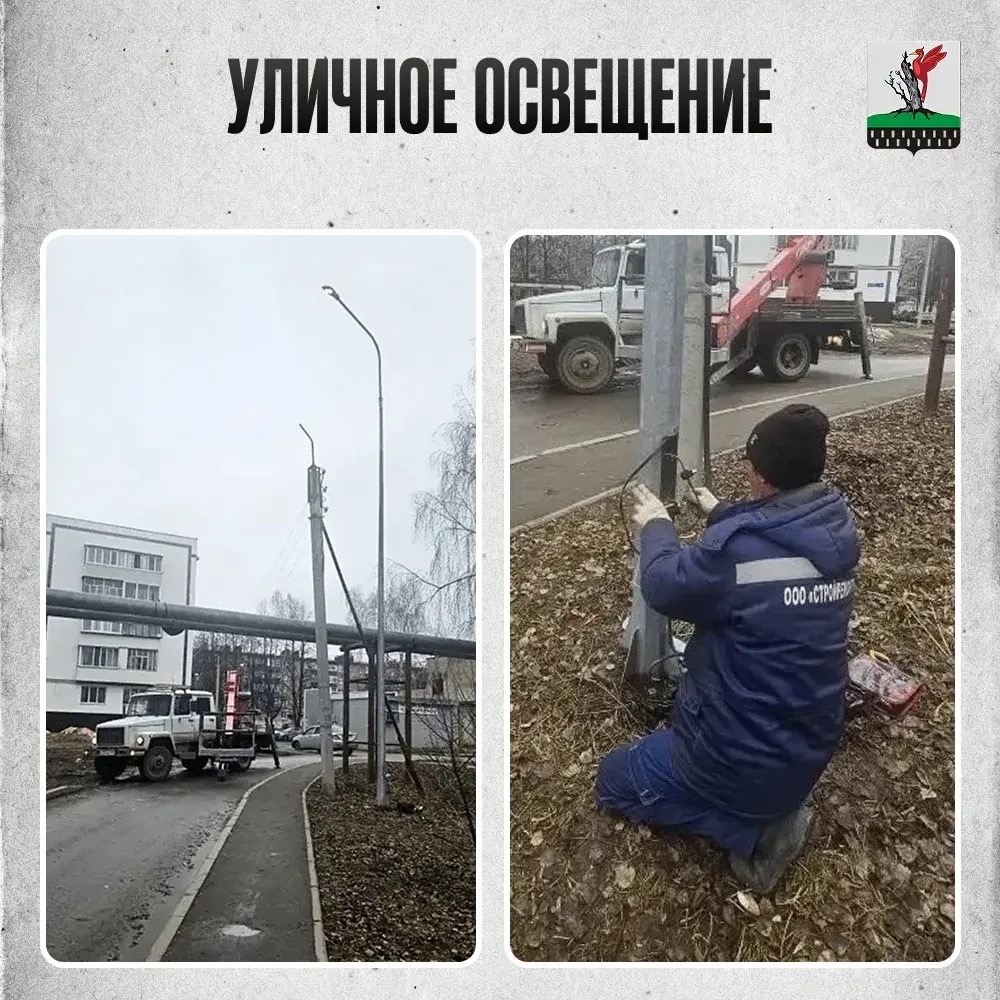 ➡Проверка уличного освещения: замена поврежденных фонарей и плафонов, укрепление столбов.