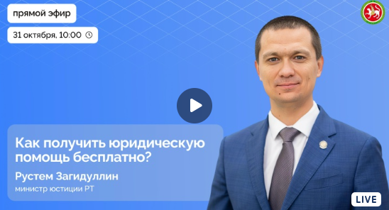 Аннан кем файдалана ала, нинди сораулар белән мөрәҗәгать итәргә һәм юристларның ярдәмен ничек алырга була? Бу һәм башка мәсьәләләр турында туры эфирда Татарстан Республикасы Хөкүмәте бергәлегендә фикер алышачакбыз.