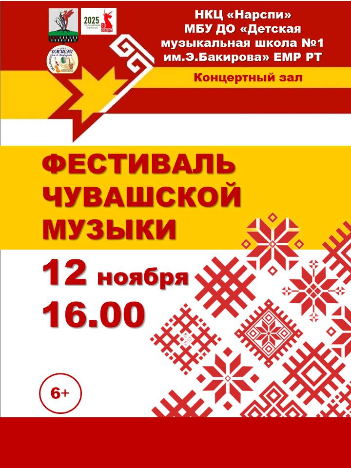 12 ноябрь көнне 16.00 сәгатьтә Э.Бакиров исемендәге Балалар музыка мәктәбе Чуваш музыкасы фестиваленә чакыра. Концерт программасы Алабуга шәһәренең мәдәният һәм сәнгать көллияте укучылары, укытучылары һәм студентлары тарафыннан әзерләнгән.