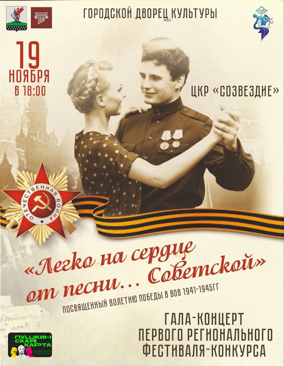 19 ноябрьдә 18.00 сәгатьтә «Йолдызлык» мәдәни үсеш үзәгендә төбәк конкурс-фестивале узачак. Ул 1941-1945 еллардагы Бөек Ватан сугышында Җиңүнең 80 еллыгына багышланган һәм «Совет җырларыннан күңелгә җиңел» дип атала.