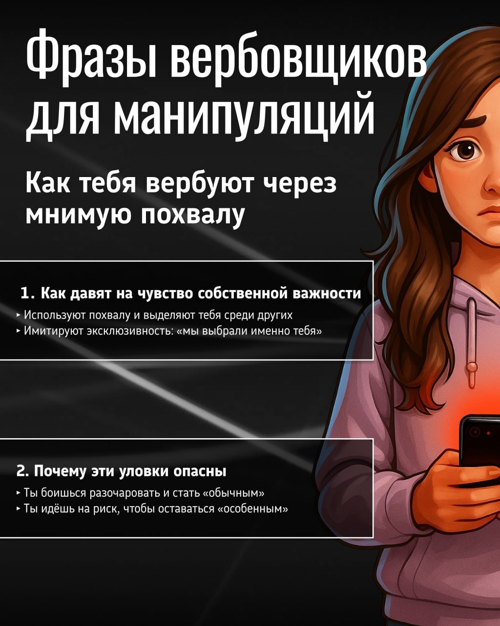 Мактау — тозак, ә аңлау — иллюзия генә. Җинаятьчеләрнең цифрлы киңлектә яшүсмерләргә йогынты ясау өчен нинди хәйләләр куллануы турында мөһим сөйләшүне дәвам итәбез. Аларның коралы – янаулар түгел, ә оста итеп яшерелгән манипуляцияләр.