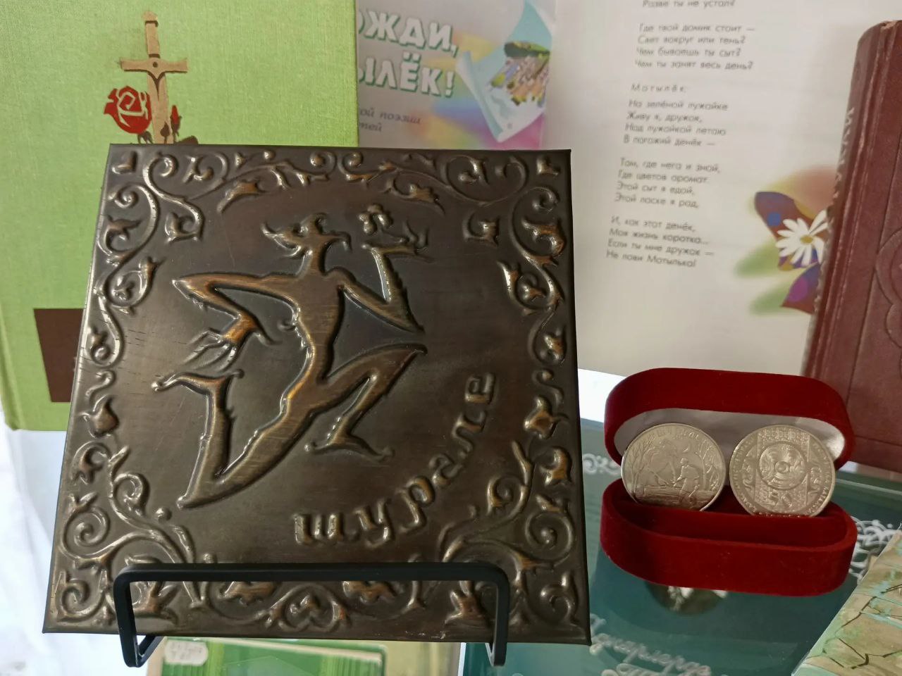 Күргәзмәнең өстәмәсе булып Казахстан Республикасының 50 тәңкә номиналындагы истәлекле тәңкәсе (2013 ел) тора, ул «Шүрәле» әкиятенең билгеле бер мизгелен күрсәтә.