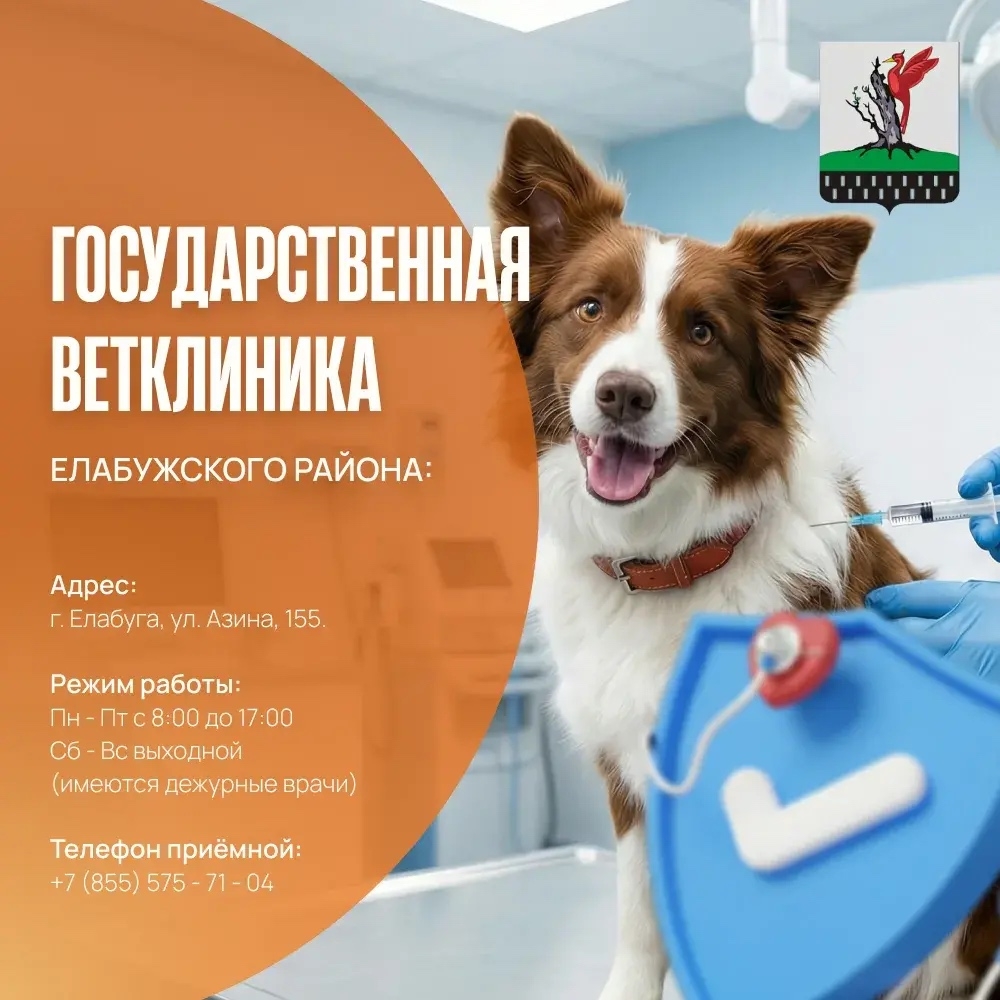 Алабуга районы Дәүләт ветеринария берләшмәсе, Алабуга шәһәре, Азин ур., 155. Эш режимы: 8.00 –17.00 кадәр, шимбә-якшәмбе– ял көне (кизү торучы табиблар бар). Кабул итү бүлмәсе телефоны: +7 (855)575-71-04.