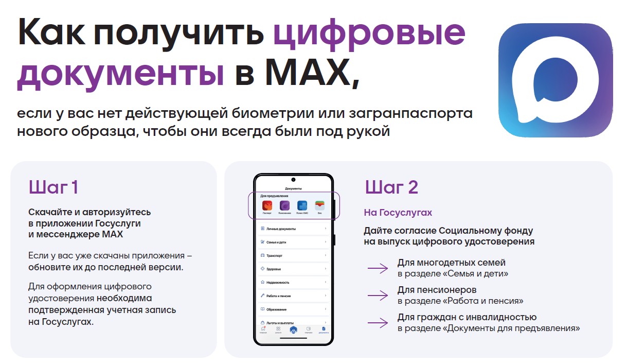 Күп балалы ата-аналарны, өлкән яшьтәге гражданнарны, шулай ук инвалидлыгы булган гражданнарны алга таба цифрлы ID булдыру өчен «MAX» милли мессенджеры белән файдаланырга чакырабыз.