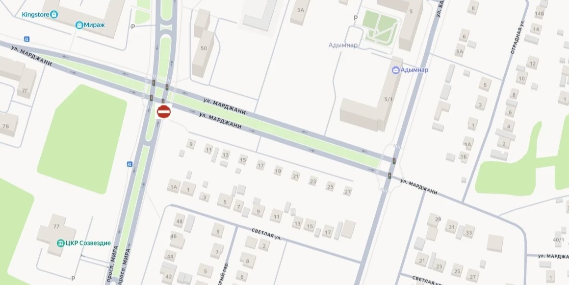 Шәһәр халкына янгын нәтиҗәсендә юлның вакытлыча ябылуы турында хәбәр итәләр. Хәрәкәт Тынычлык проспекты һәм Мәрҗани урамы киселешеннән алып чикләнәчәк. Сәбәбе- янгынны сүндергәндә файдаланылган янгын сүндерүче күбекнең автомобиль юлына агып төшүе.